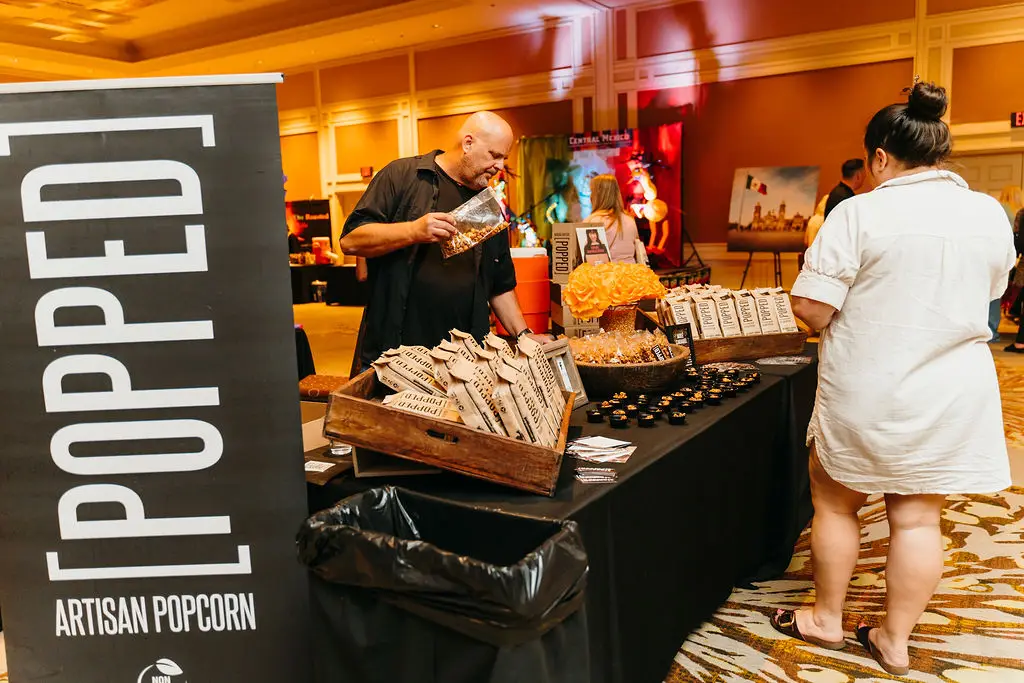 The event takes place indoors within the banquet rooms and foyer spaces at the resort