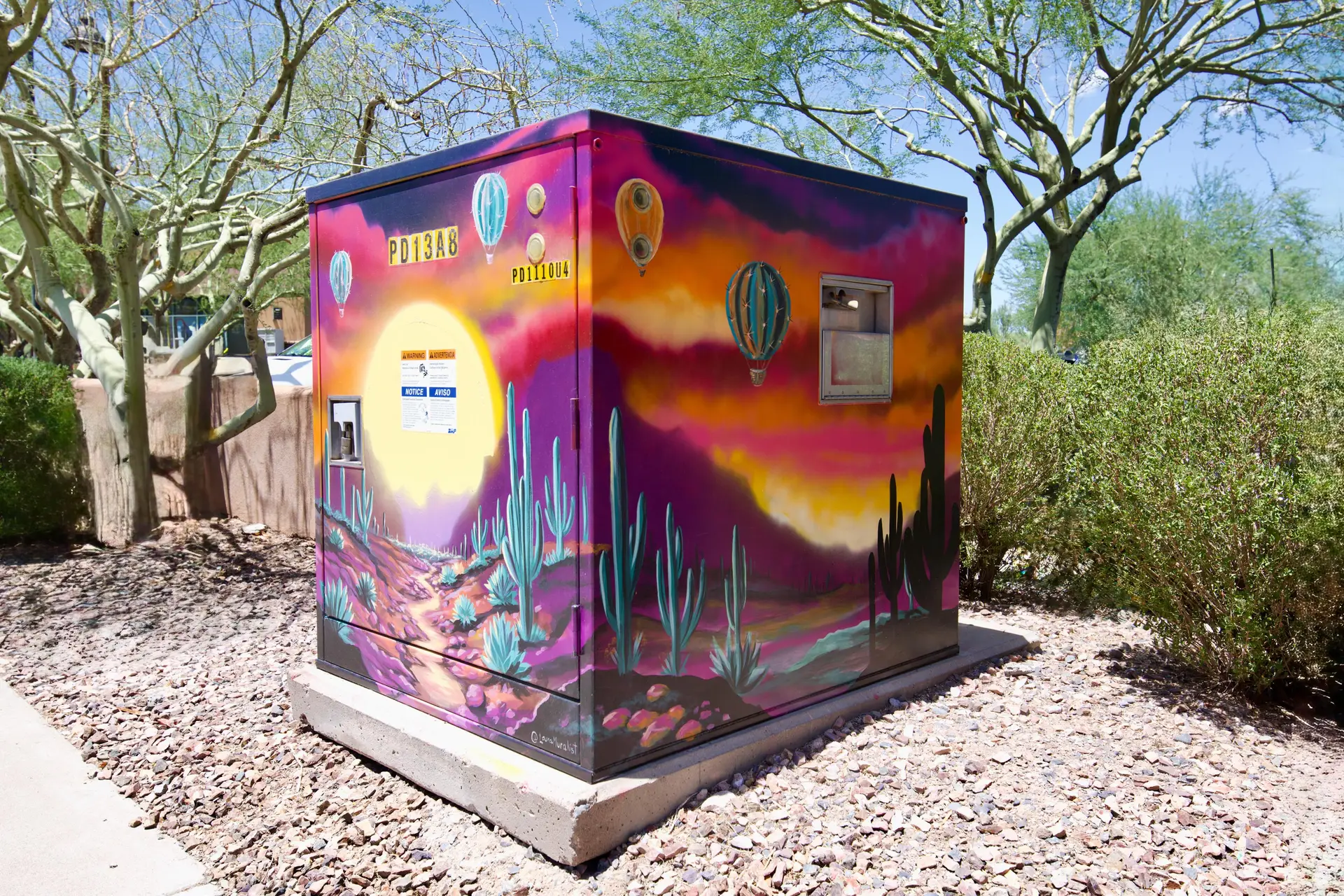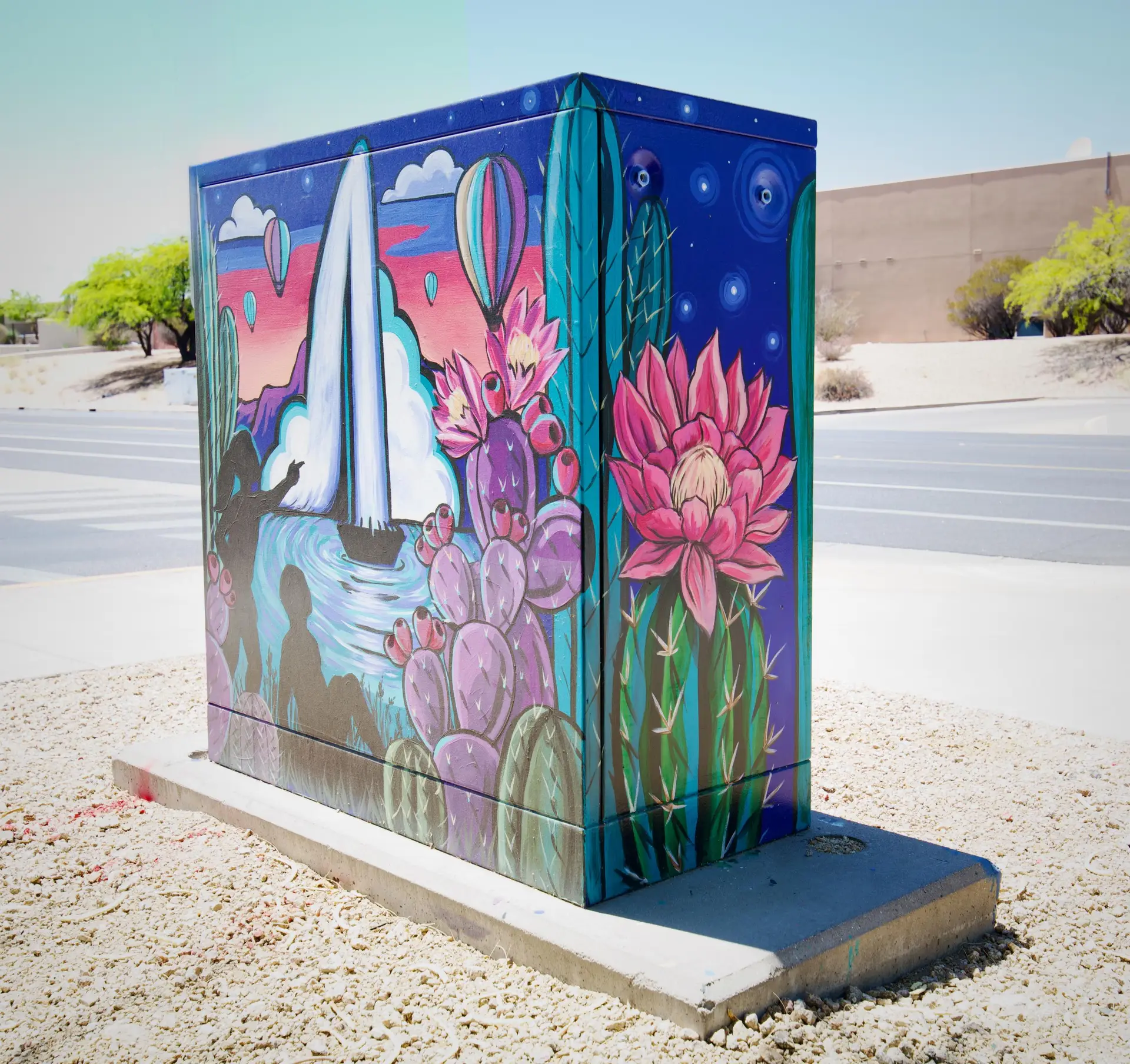 Since 2023, Art State Arizona has partnered with the Town of Fountain Hills to invest in a bold public art initiative that reimagines the community’s shared spaces as dynamic works of art. What were once overlooked utility boxes scattered throughout the downtown business district are now striking murals that celebrate the town’s identity, culture, and creative spirit.