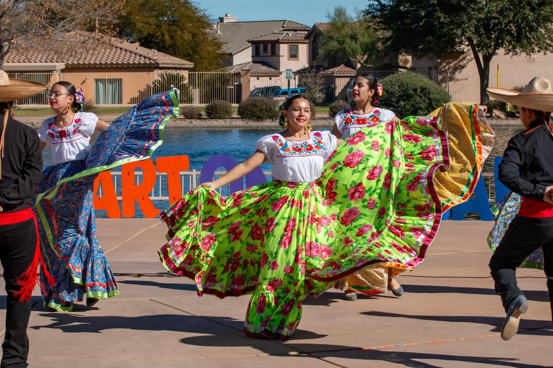 Nestled in the heart of the community, Sahuarita Lake Park is a 15-acre oasis featuring a scenic, man-made lake encircled by a one-mile walking path. The park offers shaded ramadas, playgrounds for kids, open green spaces, and fishing piers—all serving as the backdrop for the festival. With sweeping desert mountain views and tranquil waters, the park is a natural fit for a cultural gathering that blends art and nature in harmony.